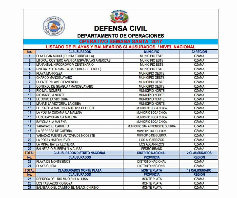 Brand, está clausurado el balneario Suberví y en el Distrito Nacional está