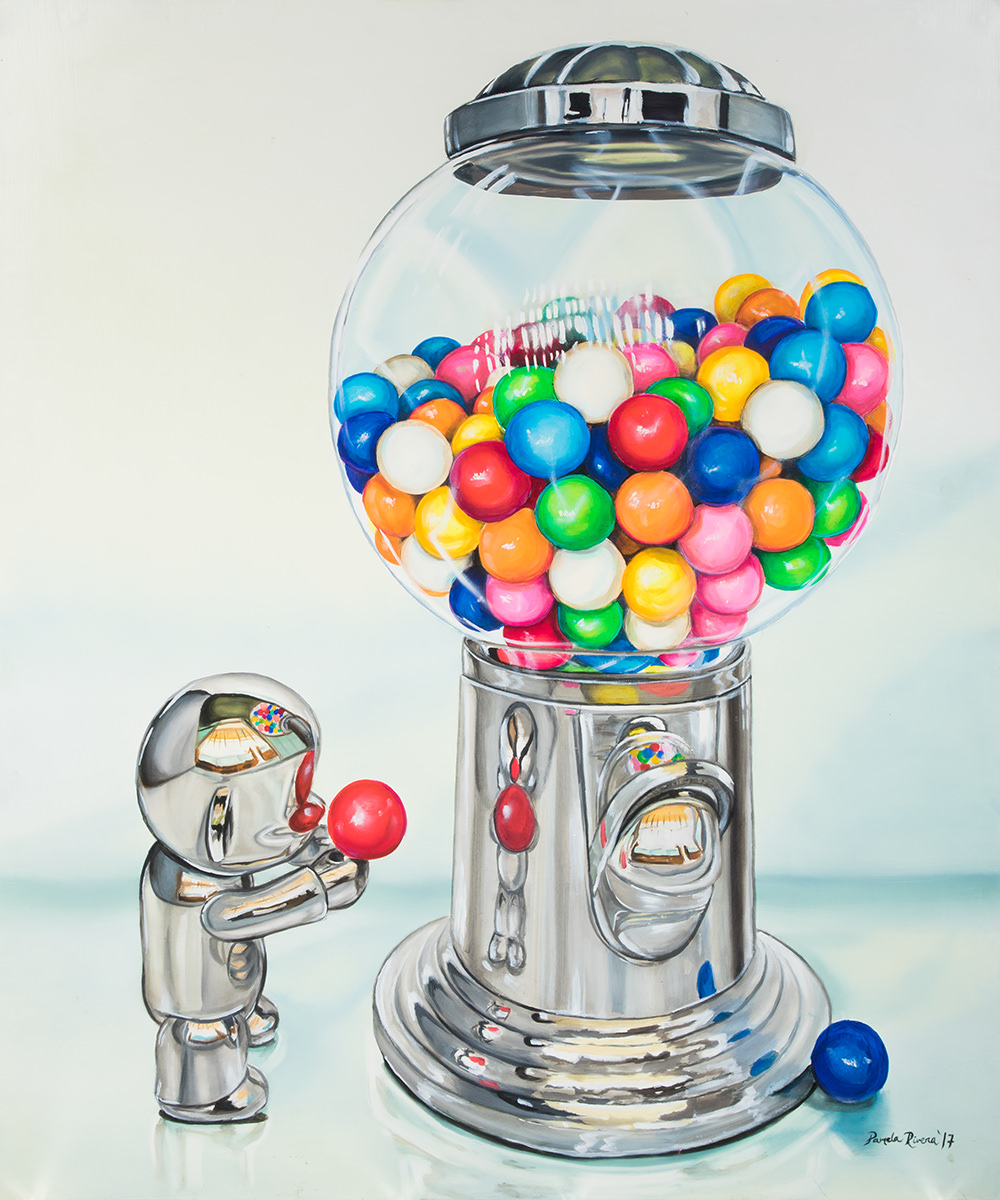 Faracci Amaro, directora de  la galería de arte, manifiesta que la enigmática exposición de Pamela Rivera, quien forma parte de los artistas que representa District & Co. The Gallery, “Jugando con Jeff” apuesta a la tentativa de jugar y divertirse, a la altura de los grandes maestros, dejándose seducir por el icono del pop art Jeff Koons.